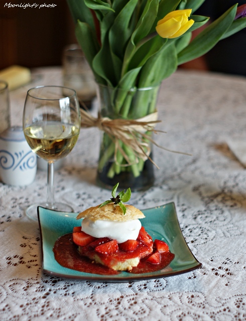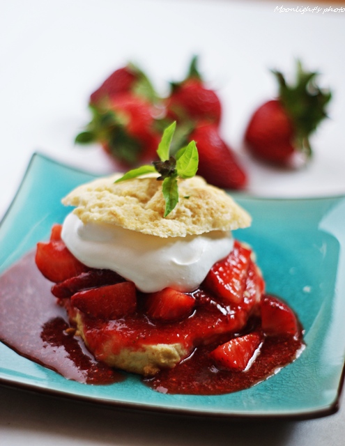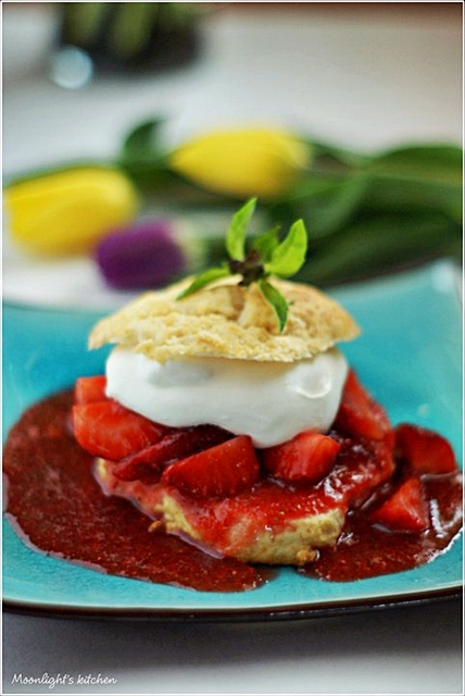 Mùa hè đang tưng bừng sắc nắng. Nhà mình cũng đã hái được những trái dâu tây chín mọng ngọt lịm đầu mùa. Thế là mình có bánh Strawberry shortcake để ăn sau bữa tối nhé.